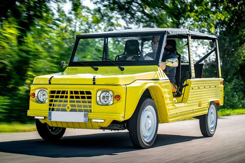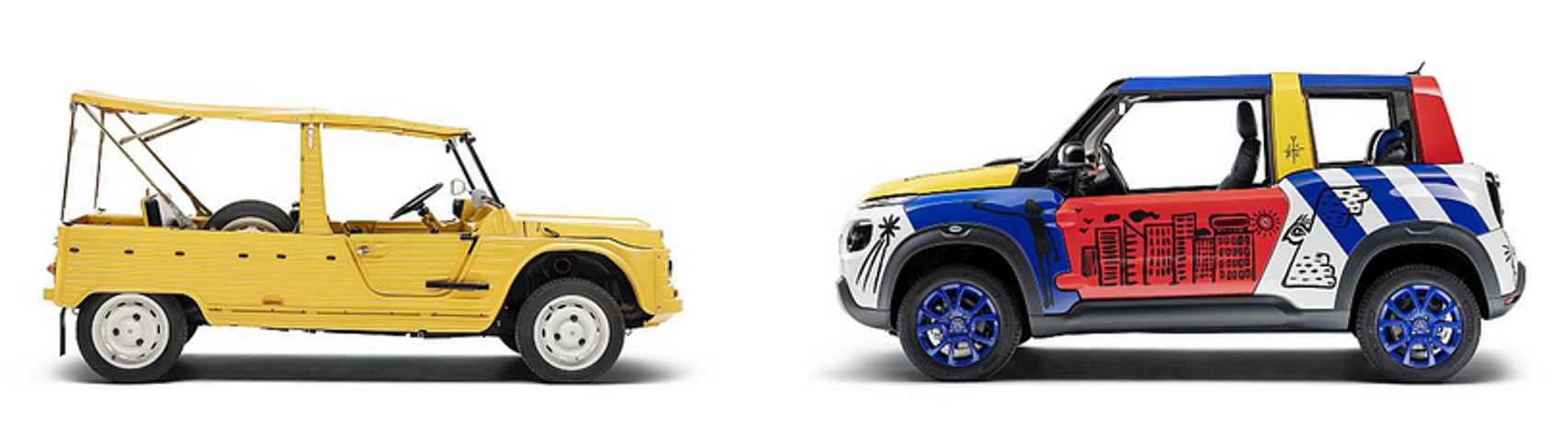 | Foto: Méhari original e o E-Mehari, que não está disponível em Portugal. |