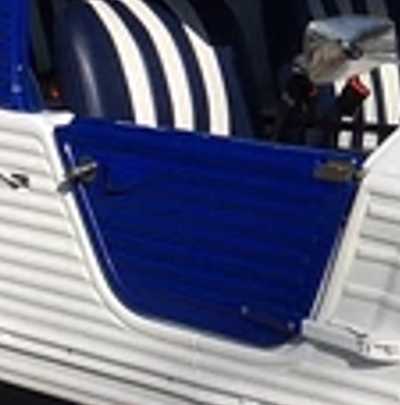 - Versão Azur, com a carroçaria branca com portas azuis, grelha e capota em lona, assentos estofados em tecido em riscas largas de azul e branco.