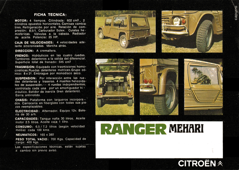 | Foto: Méhari "Ranger" | Foto: Detalhe da brochura técnica da versão Ranger |