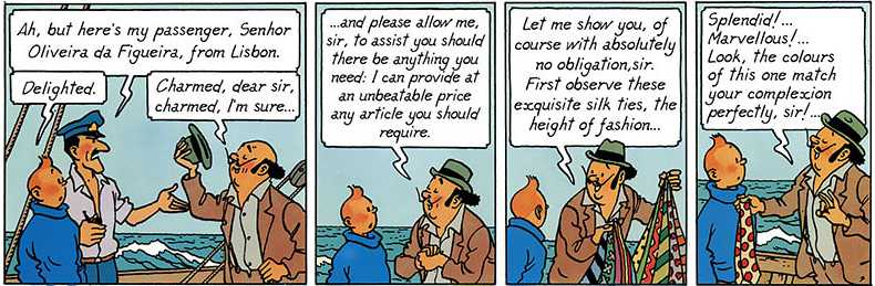 | Imagem: Apresentação do Sr. Oliveira da Figueira ao Tintin - Versão Inglesa. |